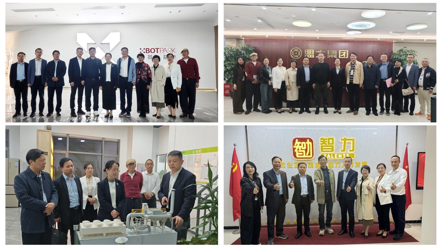 為了積極推動校企合作,創(chuàng)新人才培養(yǎng)模式,權(quán)雅寧一行還深入XbotPark 機器人基地、盟大集團、諾普信農(nóng)化股份有限公司(東莞公司)、綠聯(lián)凈化股份有限公司、深圳市智力信息技術(shù)服務(wù)有限公司等多家企業(yè)與機構(gòu)展開調(diào)研與交流,詳細(xì)了解了前沿科技在教育與產(chǎn)業(yè)創(chuàng)新中的應(yīng)用,并與企業(yè)負(fù)責(zé)人圍繞技術(shù)研發(fā)、崗位設(shè)置以及產(chǎn)學(xué)研合作等議題展開深入探討,就聯(lián)合培養(yǎng)碩士研究生、設(shè)立校外人才庫、打造校企聯(lián)合培養(yǎng)創(chuàng)新班等合作模式達(dá)成了共識,進一步推動了學(xué)校與企業(yè)在人才供需兩端的深度對接與資源整合。