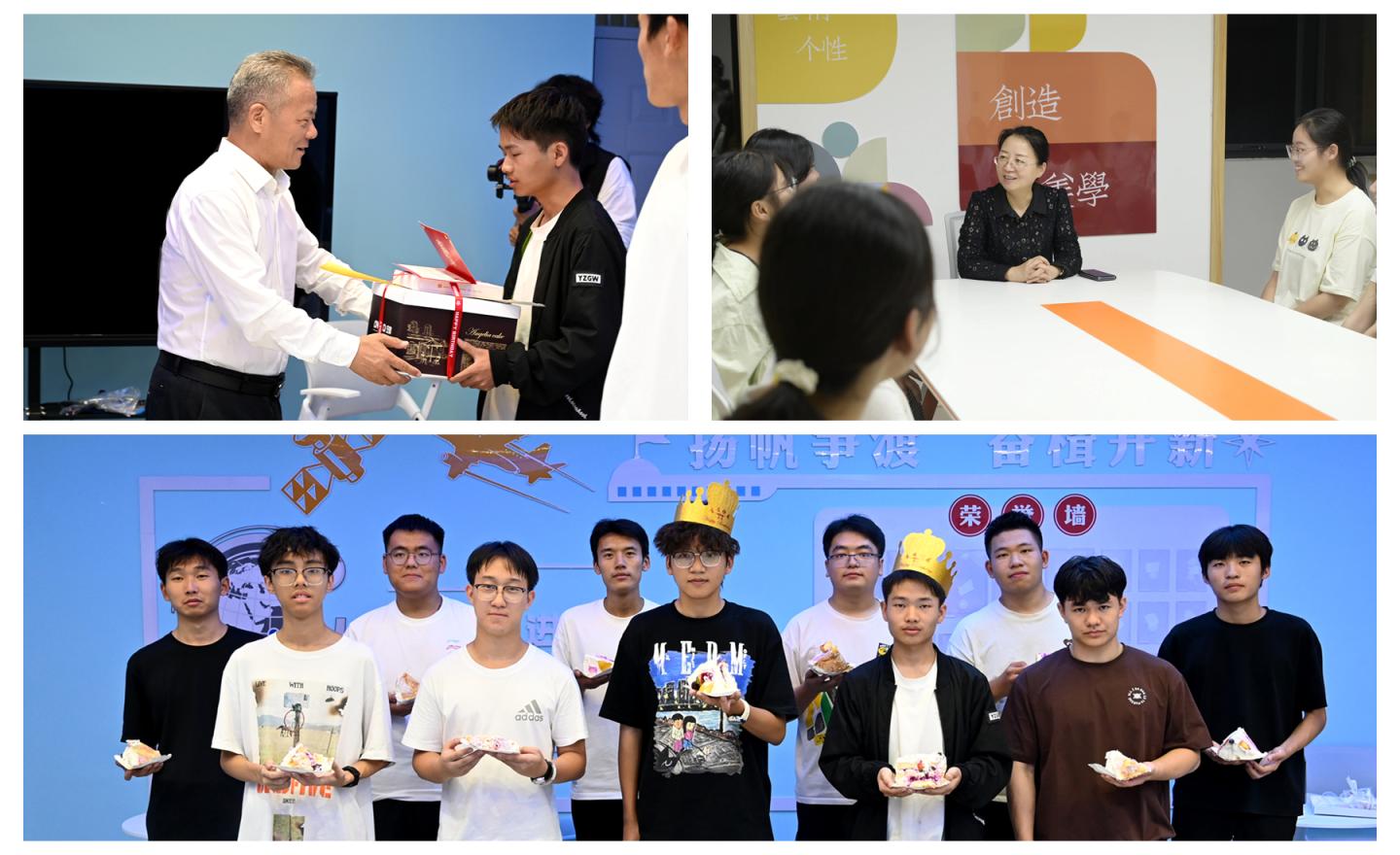 校領(lǐng)導(dǎo)張志昌、權(quán)雅寧、劉寶盈、王新軍、王浩、郭瑾、程敏還分別深入學(xué)生社區(qū)和新生宿舍,為迎新期間過(guò)生日的16名2025級(jí)學(xué)生舉辦了簡(jiǎn)單而溫馨的集體生日會(huì)。向他們送上生日祝福和生日蛋糕,傾聽新生的入學(xué)感受,解答同學(xué)們關(guān)于學(xué)業(yè)與生活的困惑并給予貼心建議。校領(lǐng)導(dǎo)勉勵(lì)新生,要充分把握“大學(xué)”這一重要成長(zhǎng)階段,早日成長(zhǎng)為有理想、有本領(lǐng)、有擔(dān)當(dāng)?shù)男聲r(shí)代青年。