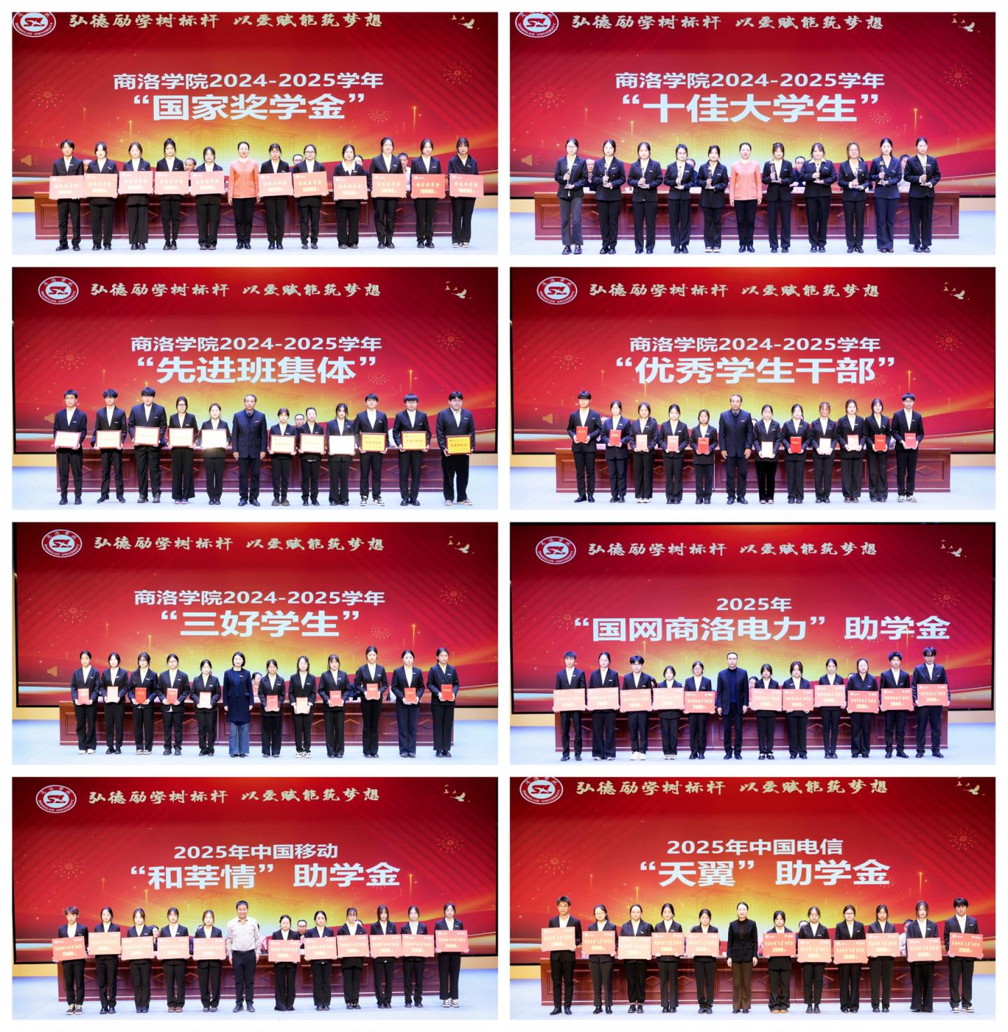大會(huì)對(duì)榮獲國(guó)家獎(jiǎng)學(xué)金及2024-2025學(xué)年“先進(jìn)班集體”“十佳大學(xué)生”“三好學(xué)生”“優(yōu)秀學(xué)生干部”等榮譽(yù)稱號(hào)的集體與個(gè)人進(jìn)行了表彰。國(guó)網(wǎng)商洛供電公司、商洛電信、商洛移動(dòng)等企業(yè)代表分別向“國(guó)網(wǎng)商洛電力助學(xué)金”“天翼助學(xué)金”“和莘情助學(xué)金”受助學(xué)生發(fā)放了資助款。
