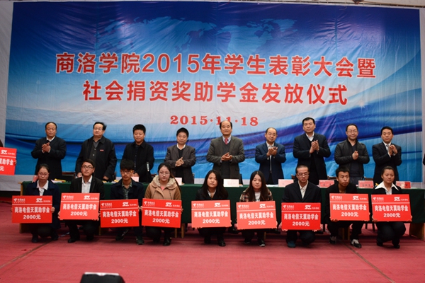 2015年,“國網(wǎng)商洛電力”助學(xué)金、商洛郵政“鴻雁愛心”助學(xué)金、商洛聯(lián)通“沃校園”助學(xué)金、商洛電信天翼助學(xué)金、森弗愛心獎學(xué)金及助學(xué)金共資助我校學(xué)生180名,總金額38萬元。