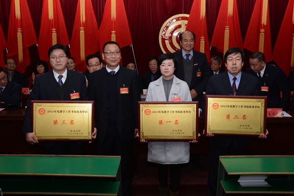 會上,還對2015年度目標責(zé)任考核優(yōu)秀集體和個人、科研工作考核優(yōu)秀集體和先進個人、教學(xué)工作考核優(yōu)秀集體和優(yōu)秀教學(xué)工作者進行了表彰獎勵。