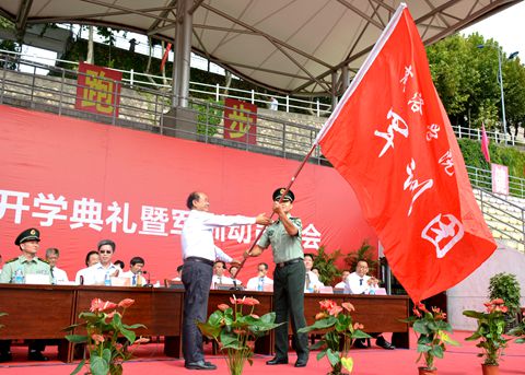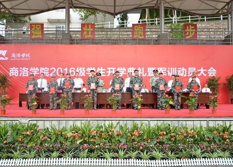 9月5日,天穹碧藍(lán),艷陽(yáng)高照,我校在體育場(chǎng)隆重舉行2016級(jí)學(xué)生開學(xué)典禮暨軍訓(xùn)動(dòng)員大會(huì)。商洛市委常委、市人民政府副市長(zhǎng)王華,校領(lǐng)導(dǎo)劉建林、范新會(huì)、魏書堂、劉寶盈,陸軍第47集團(tuán)軍某部政治部副主任張文平中校,陸軍第47集團(tuán)軍某部機(jī)步營(yíng)營(yíng)長(zhǎng)、商洛學(xué)院2016級(jí)學(xué)生軍訓(xùn)團(tuán)團(tuán)長(zhǎng)馬防少校,商洛市人民政府辦公室紀(jì)檢組長(zhǎng)郭安貴出席大會(huì)。校黨委書記、校長(zhǎng)劉建林作重要講話,并向承訓(xùn)教官授予2016級(jí)學(xué)生軍訓(xùn)團(tuán)團(tuán)旗。大會(huì)由校黨委副書記彭虎軍主持。各學(xué)院(部)黨、政主要負(fù)責(zé)人,學(xué)生處、教務(wù)處、招生就業(yè)處、宣傳部、校團(tuán)委、圖書館主要負(fù)責(zé)人及2016級(jí)新生參加了大會(huì)。