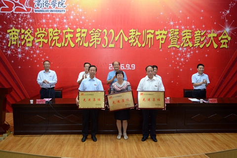 在莊嚴的國歌聲中,慶祝暨表彰大會開始。校黨委副書記彭虎軍宣讀了表彰決定。出席大會的校領(lǐng)導(dǎo)為獲得先進集體榮譽稱號的化學(xué)工程與現(xiàn)代材料學(xué)院、生物醫(yī)藥與食品工程學(xué)院、語言文化傳播學(xué)院、教務(wù)處、教學(xué)評估中心5個單位,獲得優(yōu)秀教師榮譽稱號的冀玉良等21人,獲得優(yōu)秀教育工作者榮譽稱號的何念武等9人,獲得師德先進集體榮譽稱號的城鄉(xiāng)規(guī)劃與建筑工程學(xué)院、經(jīng)濟與管理學(xué)院、學(xué)生處3個單位,獲得師德先進個人榮譽稱號的黃元英等10人頒獎。