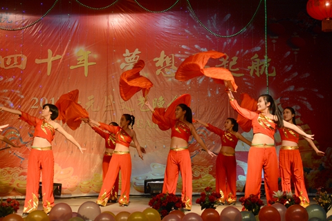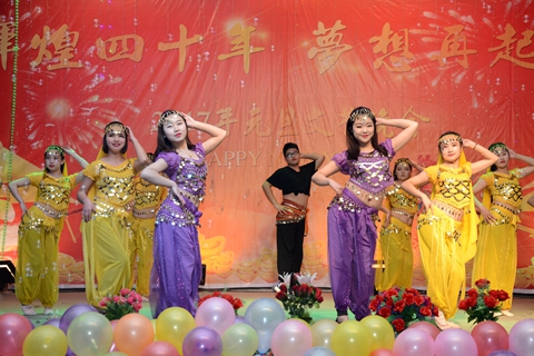 當(dāng)晚的大學(xué)生活動中心張燈結(jié)彩,喜氣洋洋,洋溢著濃濃的節(jié)日氛圍。晚會在民樂合奏《北京喜訊傳邊塞》的歡快樂曲聲中緩緩拉開了帷幕。歌曲、舞蹈、朗誦、魔術(shù)、健身操等十七個形式多樣、精彩紛呈的節(jié)目贏得了觀眾們熱烈的掌聲與陣陣喝彩。