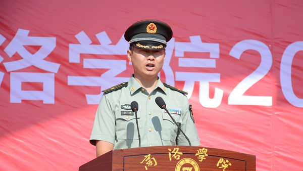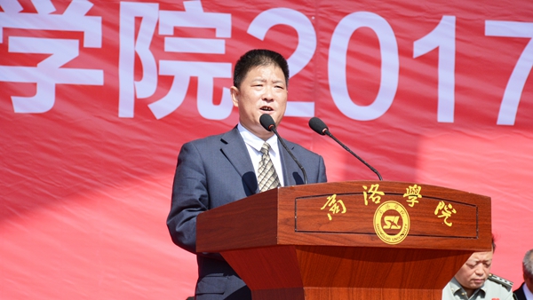 范新會代表全校師生員工對2017級新同學(xué)來商洛學(xué)院學(xué)習(xí)深造表示熱烈歡迎,對獲得“新生獎學(xué)金”的同學(xué)們表示熱烈祝賀,對承擔軍訓(xùn)任務(wù)的全體官兵表示衷心的感謝,并介紹了我校的辦學(xué)歷史、辦學(xué)定位、辦學(xué)理念、辦學(xué)特色和未來發(fā)展前景。范新會指出,建校以來,我校已為國家培養(yǎng)了4萬余名合格人才,今天的商洛學(xué)院已經(jīng)成為鑲嵌于商洛大地、丹江河畔的一張金色名片,一座為國家源源不斷培養(yǎng)和輸送優(yōu)秀人才的黌門圣殿,以強有力的人才支持、智力支撐、文化引領(lǐng)和科技服務(wù),持續(xù)推動著商洛區(qū)域經(jīng)濟社會和文化發(fā)展。