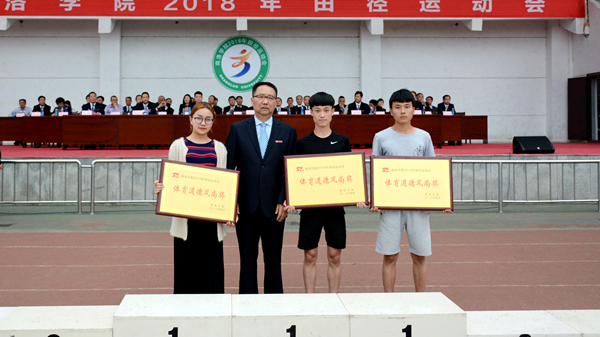在熱烈的掌聲中,黨委書記龍治剛為團(tuán)體總分前三名、體育道德風(fēng)尚獎獲獎學(xué)院頒獎。紀(jì)委書記王思懷、黨委副書記彭虎軍分別為男子總分前三名、女子總分前三名獲獎學(xué)院頒獎。