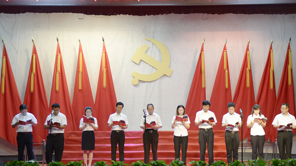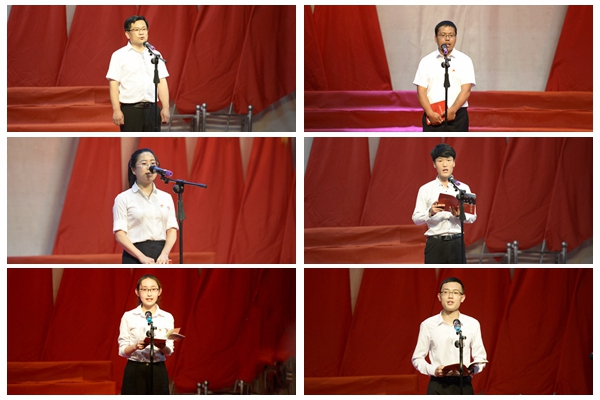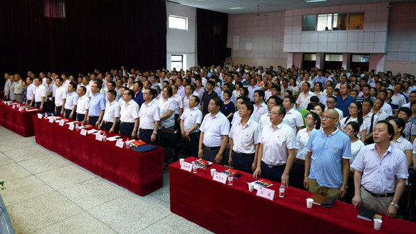 會場氣氛隆重?zé)崃?,黨旗鮮艷高揚,黨徽熠熠閃光,師生精神飽滿。大會伊始,全體起立,高唱國歌。激昂的旋律、洪亮的歌聲響徹會場。
