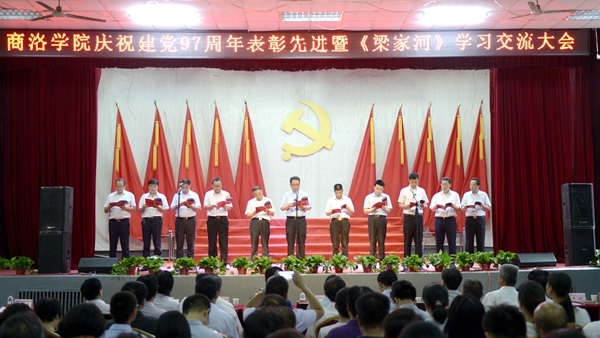 6月27日,我校慶祝建黨97周年表彰先進(jìn)暨《梁家河》學(xué)習(xí)交流大會在大學(xué)生活動中心召開。黨委書記龍治剛,黨委副書記、校長范新會,紀(jì)委書記王思懷,副校長魏書堂,黨委副書記彭虎軍,副校長劉寶盈、劉勇,黨委委員王新軍、李超、楊存典、張向東、郭瑾出席大會。師生化身朗讀者同臺深情誦讀《梁家河》經(jīng)典章節(jié),重溫革命歷史和崢嶸歲月,交流學(xué)習(xí)《梁家河》心得體會,對先進(jìn)集體和個人予以表彰,共聚一堂熱烈慶祝黨的生日,用嘹亮的歌聲和真摯的語言,從心底深處歌頌黨、歌頌祖國,歌頌我們的新時代。全校在職教工黨員、離退休職工黨員代表、學(xué)生黨員代表近500人參加大會。