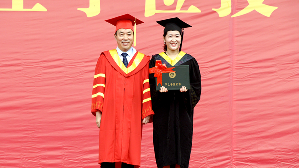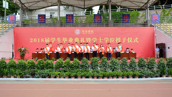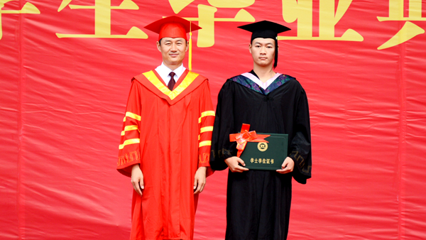 在學(xué)士學(xué)位授予儀式上,校長范新會、黨委副書記彭虎軍、副校長劉勇分別為獲得學(xué)士學(xué)位的畢業(yè)生正冠撥蘇、頒發(fā)學(xué)位證書,并與他們一 一合影留念。