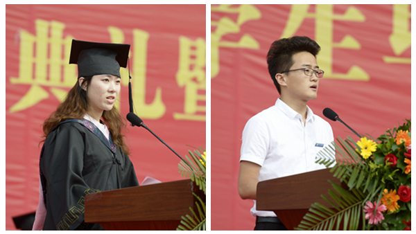 人文學(xué)院秘書學(xué)專業(yè)1401班孟丹代表2018屆畢業(yè)生,向?qū)W校領(lǐng)導(dǎo)和老師致以最崇高的敬意和最衷心的感謝!他說,我們將帶著母校的希望與囑托,去勇敢面對人生,尋求生命的光榮和夢想。未來的我們會更加勤奮,更加拼搏,未來的商院也必將更加繁榮,更加強(qiáng)大!