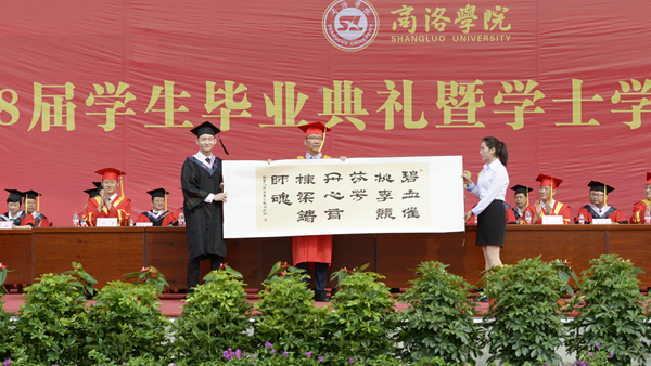 副校長劉勇宣讀了商洛學(xué)院2018屆畢業(yè)生畢業(yè)資格及學(xué)士學(xué)位授予資格審核結(jié)果、優(yōu)秀畢業(yè)生及“奉獻(xiàn)基層 服務(wù)邊疆”優(yōu)秀畢業(yè)生表彰決定。思政1402班常文潔等126名同學(xué)被授予“優(yōu)秀畢業(yè)生”榮譽(yù)稱號,思政1402班王聰?shù)?0名同學(xué)被評為“奉獻(xiàn)基層 服務(wù)邊疆”優(yōu)秀畢業(yè)生。在熱烈的掌聲中,校領(lǐng)導(dǎo)為優(yōu)秀畢業(yè)生代表頒發(fā)了證書。