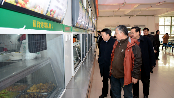 在魏書(shū)堂、彭虎軍的陪同下,袁寧一行深入學(xué)生食堂等處進(jìn)行了實(shí)地檢查。