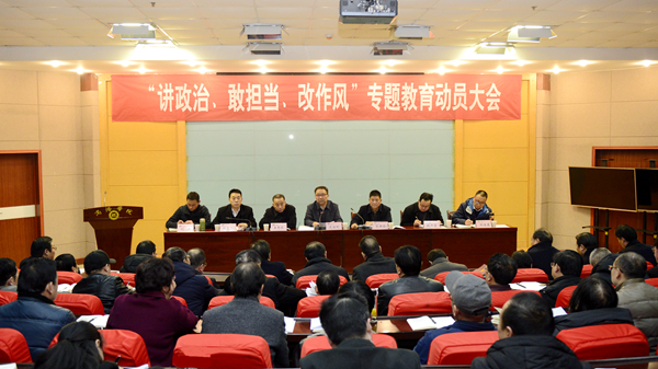 彭虎軍宣讀了《中共商洛學(xué)院委員會(huì)印發(fā)〈關(guān)于在全校處級(jí)以上干部中開展“講政治、敢擔(dān)當(dāng)、改作風(fēng)”專題教育的實(shí)施方案〉的通知》,并就我校專題教育工作進(jìn)行了安排部署。