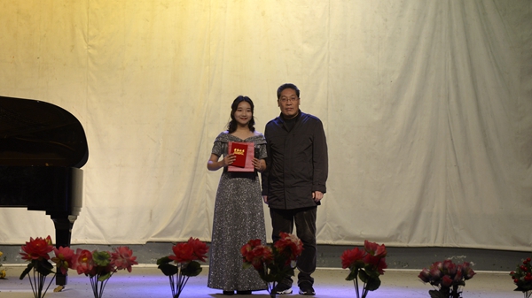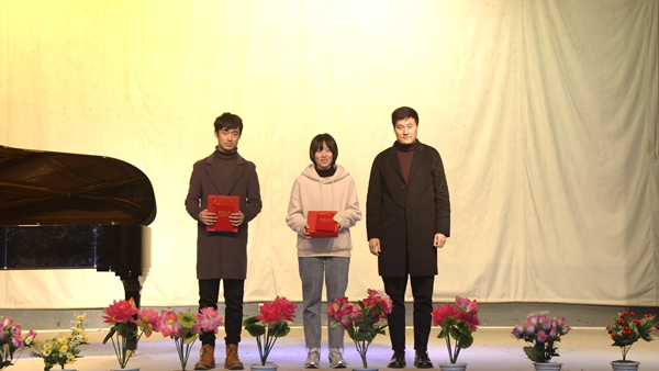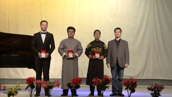 本次藝術(shù)活動(dòng)旨在深入貫徹全國(guó)教育大會(huì)精神,用多彩的藝術(shù)形式引導(dǎo)大學(xué)生堅(jiān)定理想信念,營(yíng)造良好校園文化氛圍?;顒?dòng)包括好聲音、書畫、誦讀三個(gè)比賽環(huán)節(jié),其中好聲音、書畫比賽分為專業(yè)組和非專業(yè)組兩個(gè)比賽組別,經(jīng)過(guò)激烈角逐、現(xiàn)場(chǎng)打分和綜合評(píng)比,最終好聲音比賽《望月》作品獲得專業(yè)組一等獎(jiǎng)、《出現(xiàn)又離開(kāi)》作品獲得非專業(yè)組一等獎(jiǎng);書畫比賽《自畫像》作品獲得專業(yè)組一等獎(jiǎng)、《錦上添花》作品獲得非專業(yè)組一等獎(jiǎng);誦讀比賽《祖國(guó)頌》作品獲得一等獎(jiǎng),另有10個(gè)參賽作品獲得二等獎(jiǎng),15個(gè)參賽作品獲得三等獎(jiǎng)。參加晚會(huì)的相關(guān)單位負(fù)責(zé)人現(xiàn)場(chǎng)分別為獲獎(jiǎng)作品頒發(fā)了榮譽(yù)證書并合影留念。