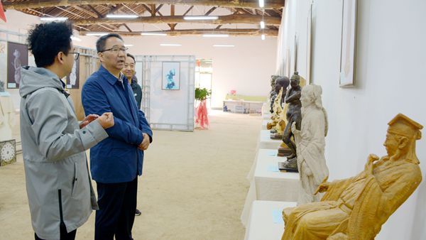 在展覽現場,校領導駐足觀看、細細品味唐曌堃臨摹和創(chuàng)作的國畫及雕塑作品,詳細了解展出作品的素材來源、技法、用彩、意境及創(chuàng)作過程,對唐曌堃創(chuàng)作水平給予了充分肯定,對展出作品給予了高度評價,并勉勵唐曌堃繼續(xù)潛心創(chuàng)作,不斷加強藝術創(chuàng)作能力,拓寬藝術從業(yè)視野,沉淀藝術創(chuàng)作思路,提高藝術教學水平,凝練作品細節(jié),簡練作品筆墨,提高作品品質,多出精品,多創(chuàng)杰作,擴大作品的知名度。