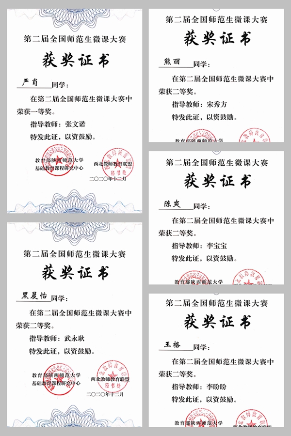 近日,第二屆全國(guó)師范生微課大賽結(jié)果公布,我校參賽學(xué)生榮獲一等獎(jiǎng)1項(xiàng)、二等獎(jiǎng)4項(xiàng)、優(yōu)秀獎(jiǎng)8項(xiàng),獲獎(jiǎng)成績(jī)和數(shù)量實(shí)現(xiàn)新突破。