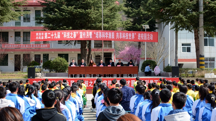 3月25日,我校聯(lián)合商洛市科協(xié)和丹鳳縣科協(xié),在丹鳳縣寺坪初級中學(xué)舉行人才服務(wù)團青少年科普教育活動,標志著我校第二十九屆“科技之春”宣傳月暨人才服務(wù)團科普下鄉(xiāng)活動正式啟動。商洛市科協(xié)副主席李文強、丹鳳縣科協(xié)主席賀燕、丹鳳縣人民政府教育督導(dǎo)室主任白寬虎出席活動,丹鳳縣寺坪初級中學(xué)校長彭家衛(wèi)主持活動。我校科技處負責人、人才服務(wù)團成員、“流動科技館”成員以及丹鳳縣寺坪鎮(zhèn)300余名中、小學(xué)師生參加了本場科普下鄉(xiāng)活動。
