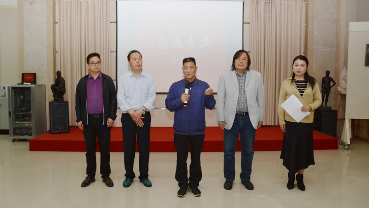 范新會(huì)在講話(huà)中指出,藝術(shù)學(xué)院結(jié)合區(qū)域人文特色,凝練打造以“秦嶺畫(huà)派”為代表的地方文化藝術(shù)品牌,為商洛文化藝術(shù)發(fā)展作出了積極貢獻(xiàn)。2020年我校美術(shù)學(xué)專(zhuān)業(yè)成功獲批省級(jí)“一流專(zhuān)業(yè)”,是學(xué)校深化教育教學(xué)改革、積極探索應(yīng)用型人才培養(yǎng)模式的成果體現(xiàn),也是美術(shù)學(xué)專(zhuān)業(yè)全體師生共同努力的結(jié)果。范新會(huì)要求藝術(shù)學(xué)院廣大師生堅(jiān)持以習(xí)近平新時(shí)代中國(guó)特色社會(huì)主義思想為指導(dǎo),以大秦嶺的自然生態(tài)和商洛人文歷史為背景,描繪商洛的好山好水,描繪商洛人民及我校師生在鄉(xiāng)村振興及全面建設(shè)社會(huì)主義現(xiàn)代化國(guó)家新征程上只爭(zhēng)朝夕、真抓實(shí)干的優(yōu)秀事跡,為我校高質(zhì)量發(fā)展貢獻(xiàn)更大力量。