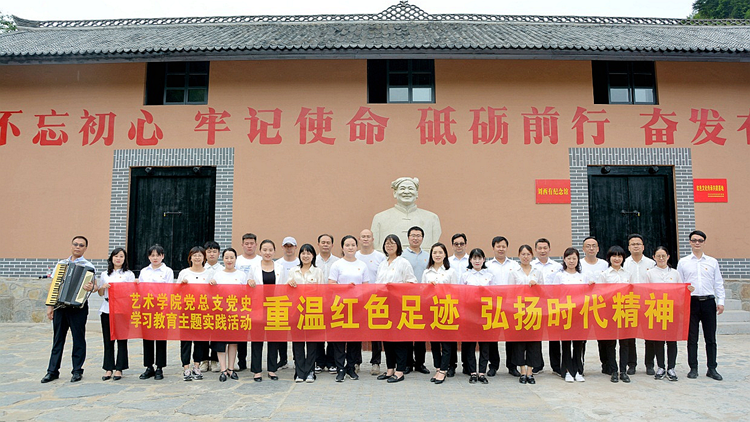 為深入開展黨史學(xué)習(xí)教育,引導(dǎo)師生黨員不忘初心、牢記使命,6月9日,藝術(shù)學(xué)院黨總支赴丹鳳縣馬爐村黨性教育基地開展“重溫紅色足跡,弘揚(yáng)時代精神”黨史學(xué)習(xí)教育。藝術(shù)學(xué)院副院長、黨總支副書記唐曌堃及30余名師生黨員參加活動。
