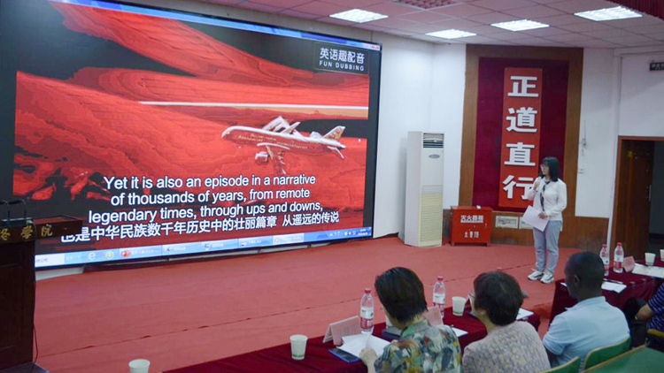 為慶祝中國(guó)共產(chǎn)黨成立100周年,傳承紅色基因,弘揚(yáng)愛(ài)國(guó)主義優(yōu)秀傳統(tǒng),增強(qiáng)師生的愛(ài)國(guó)情懷和民族自豪感,6月25日,人文學(xué)院舉辦“慶祝建黨百年 傳承紅色基因”用英語(yǔ)講好中國(guó)故事英語(yǔ)配音大賽。國(guó)際交流處處長(zhǎng)張建芳,人文學(xué)院院長(zhǎng)張文諾、黨總支副書記杜明生、副院長(zhǎng)任桂婷,健康學(xué)院黨總支書記魯綿茸,人文學(xué)院英語(yǔ)系主任廉潔及外籍教師Hillary老師擔(dān)任比賽評(píng)委。學(xué)院英語(yǔ)系全體學(xué)生觀看了比賽。