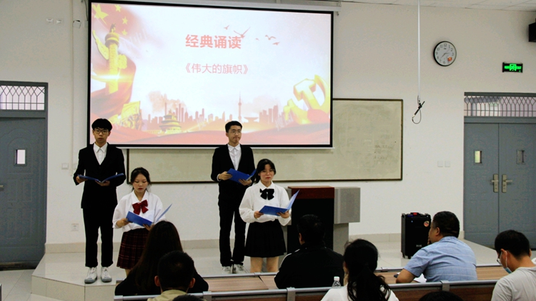 活動開始,同學(xué)們誦讀了一曲歌頌黨的史詩——《偉大的旗幟》,唱響紅色經(jīng)典《歌唱祖國》,獻(xiàn)禮建黨百年華誕。大家在鏗鏘有力的誦讀聲和嘹亮的歌唱聲中,共同回憶黨的輝煌歷史,感悟信仰的偉力,堅(jiān)定了聽黨話、跟黨走的信心,燃燒了愛國主義激情,唱響了時代最強(qiáng)音——強(qiáng)國有我。