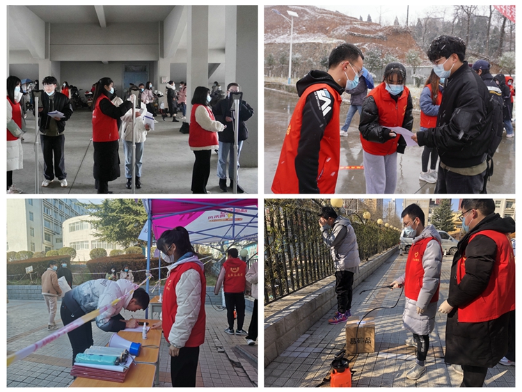 志愿者們積極配合學(xué)校疫情防控工作,協(xié)助排查師生中密切接觸者、次密切接觸者及14天內(nèi)中高風險旅居史人員;在學(xué)校研究生招生考試中,承擔疫情防控及外圍組考工作;在學(xué)校核酸檢測中,協(xié)助維護現(xiàn)場秩序,提醒師生保持一米距離,打開健康碼,佩戴好口罩;在快遞消殺工作中,手持消毒水,對每一個進??爝f進行嚴格消毒,防止病毒在校園傳播。志愿者們堅守崗位,應(yīng)聲而動,趕赴需要幫助的地方,校園中隨處可見志愿者們服務(wù)的身影,他們是校園疫情防控一支重要的力量。