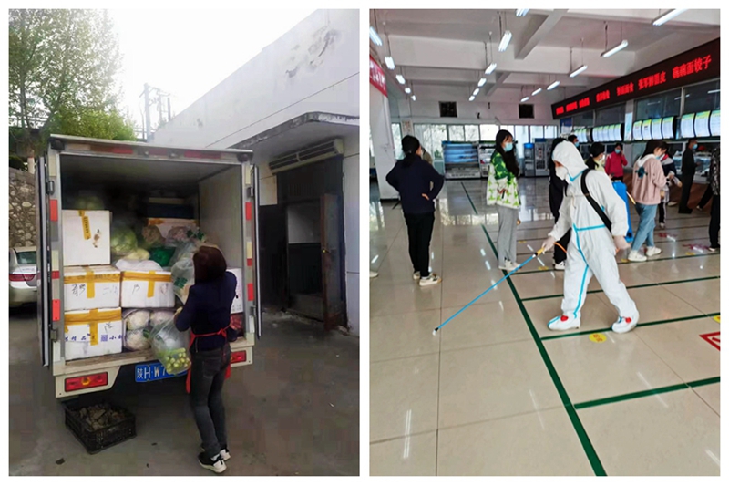 針對封控帶來的防疫物資供應(yīng)緊張、采購壓力等難題,后勤保障處多方籌措,及時采購口罩、測溫器、防護服、體溫計、消毒液等衛(wèi)生防疫物資,儲備米、面、糧、油等生活保障物資,同時建立了穩(wěn)定的供應(yīng)渠道。兩校區(qū)食堂嚴(yán)格落實衛(wèi)生消毒檢查、疫情監(jiān)測、車輛消毒監(jiān)督等工作措施,各窗口飯菜供應(yīng)齊全。飲食服務(wù)中心認(rèn)真落實學(xué)?!板e峰就餐”“禁止堂食”等工作要求,安排專人引導(dǎo)學(xué)生有序進出餐廳,保持“一米線”排隊,實現(xiàn)全程閉環(huán)管理。