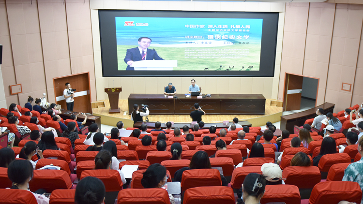 6月29日晚,中國(guó)作家“深入生活 扎根人民”暨“國(guó)之大者生態(tài)秦嶺”采訪采風(fēng)活動(dòng)文學(xué)報(bào)告會(huì)在我校舉行。河北省作協(xié)副主席李春雷為商洛市作協(xié)成員和我校師生作了題為《漫談紀(jì)實(shí)文學(xué)》的專題講座。
