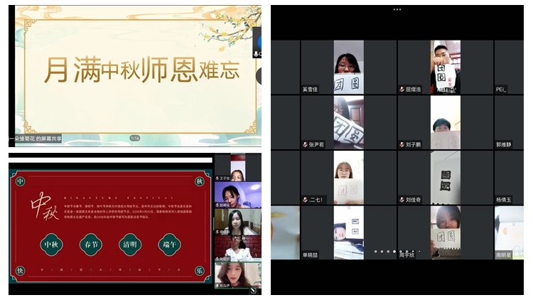 人文學(xué)院以“月滿中秋,難忘師恩”為主題舉辦線上活動。師生共讀傳統(tǒng)古詩、分享家鄉(xiāng)中秋習(xí)俗,學(xué)生們通過“云端”向老師們送來熱情的祝福,表達(dá)了自己對大學(xué)生活的憧憬。