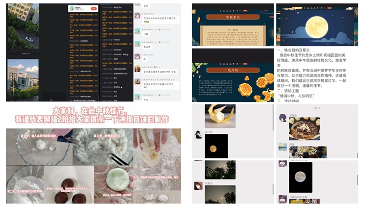 數(shù)計學(xué)院開展了線上猜燈謎、賞明月、講中秋傳統(tǒng)故事等活動。有的新生通過視頻等方式展示了自己動手制作月餅的全過程,學(xué)院教師通過VR帶領(lǐng)新生“云端逛校園”,向?qū)W生展示我校全貌。