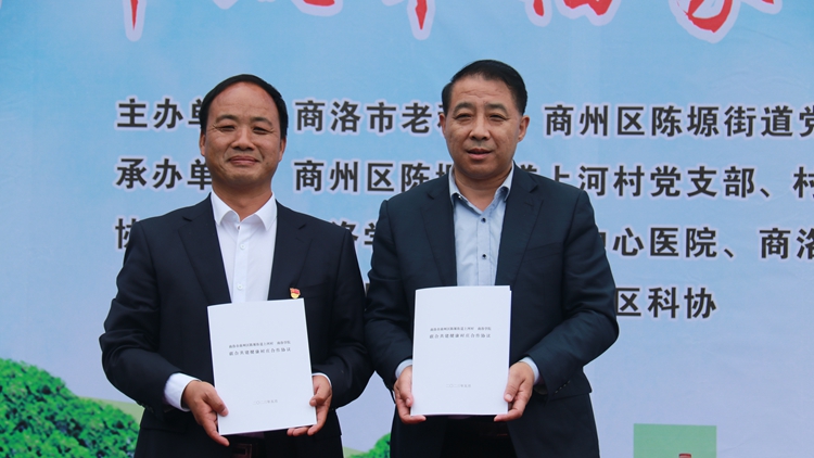 5月8日下午,商洛市舉辦商州區(qū)上河村郵政幸福家園揭牌暨共建健康村莊簽約儀式。商洛市委常委、副市長(zhǎng)孫舉恒,我校副校長(zhǎng)王新軍,商州區(qū)副區(qū)長(zhǎng)蔡磊,中國(guó)郵政陜西分公司資深經(jīng)理任樹(shù)林出席儀式。商洛市慈善協(xié)會(huì)、商洛市老科協(xié)、市老年大學(xué)等單位負(fù)責(zé)人,我校健康管理學(xué)院院長(zhǎng)郭耀東、科技處相關(guān)工作人員及經(jīng)濟(jì)管理學(xué)院教師代表參加活動(dòng)。