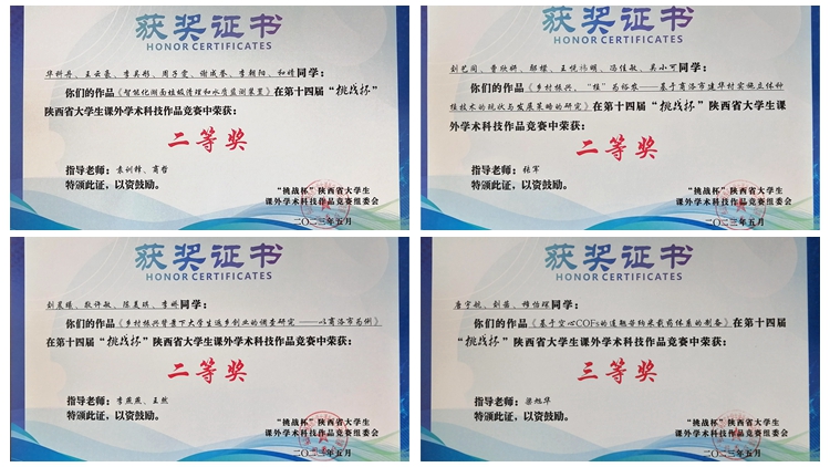 5月20日,由團省委、省委教育工委、省科技廳、省科協、省社會科學院、省學聯、西咸新區(qū)管委會共同主辦,長安大學承辦的第十四屆“挑戰(zhàn)杯”陜汽集團陜西省大學生課外學術科技作品競賽閉幕式暨頒獎儀式在長安大學舉行。我校在本次大賽中榮獲佳績,其中二等獎3項,三等獎1項。