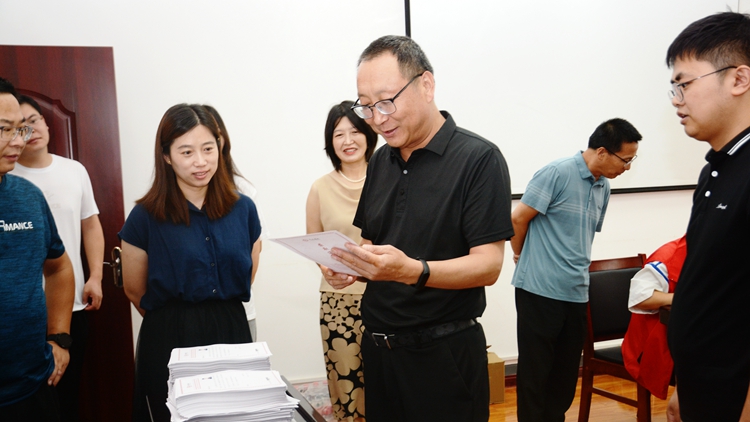 劉寶盈一行先后深入招生咨詢工作辦公室、錄取通知書制作和分揀現(xiàn)場,詳細(xì)了解2023級本科招生錄取進度、錄檢工作進展、通知書分裝郵寄等相關(guān)工作情況,對今年招生錄取工作給予充分肯定,對招生辦公室全體工作人員在暑期堅守工作崗位、辛勤付出表示慰問。在通知書制作分揀場地,劉寶盈仔細(xì)查看了新設(shè)計的錄取通知書,為通知書中飽含的人文關(guān)懷點贊。