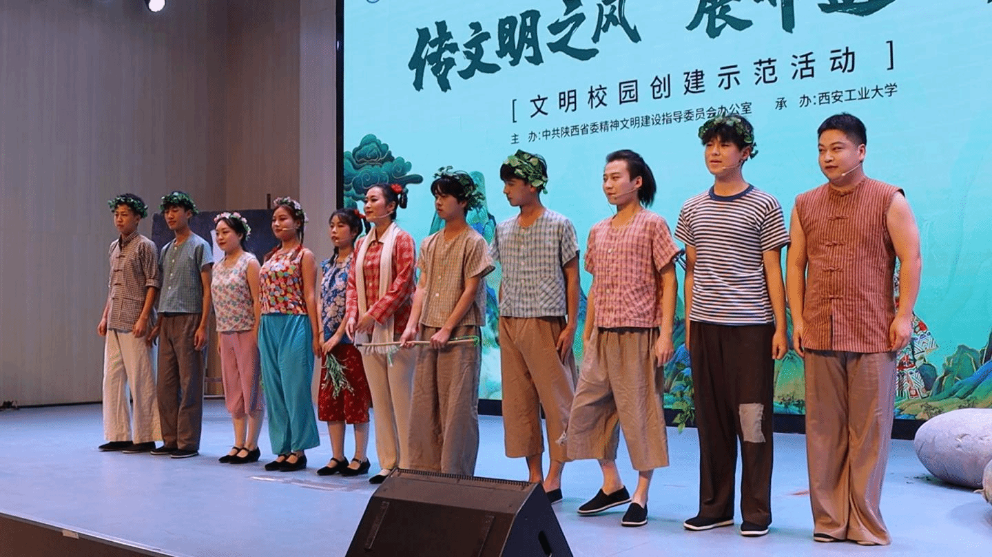 我校藝術(shù)學(xué)院教師莫飛帶隊(duì)、馮淵指導(dǎo),音樂(lè)學(xué)專業(yè)11名學(xué)生表演了商洛花鼓《月亮光光》選段《追趕星星和太陽(yáng)》,與西安工業(yè)大學(xué)、延安大學(xué)、西安外事學(xué)院、陜西藝術(shù)職業(yè)學(xué)院表演的花鼓燈、信天游、秦腔、古琴、鼓樂(lè)等非遺節(jié)目逐一展示,充分展現(xiàn)了中華優(yōu)秀傳統(tǒng)文化的獨(dú)特魅力。