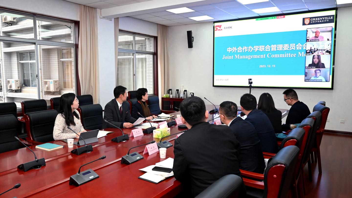 12月15日,我校召開中外合作辦學(xué)聯(lián)合管理委員會會議。校黨委副書記劉勇出席會議。國際合作與交流處負責(zé)人,電信學(xué)院黨政負責(zé)人及相關(guān)工作人員參加會議。美國格林威爾大學(xué)校長Suzanne Davis,工程系主任David Probst,國際處主任Liang Ge通過線上視頻形式參加會議。