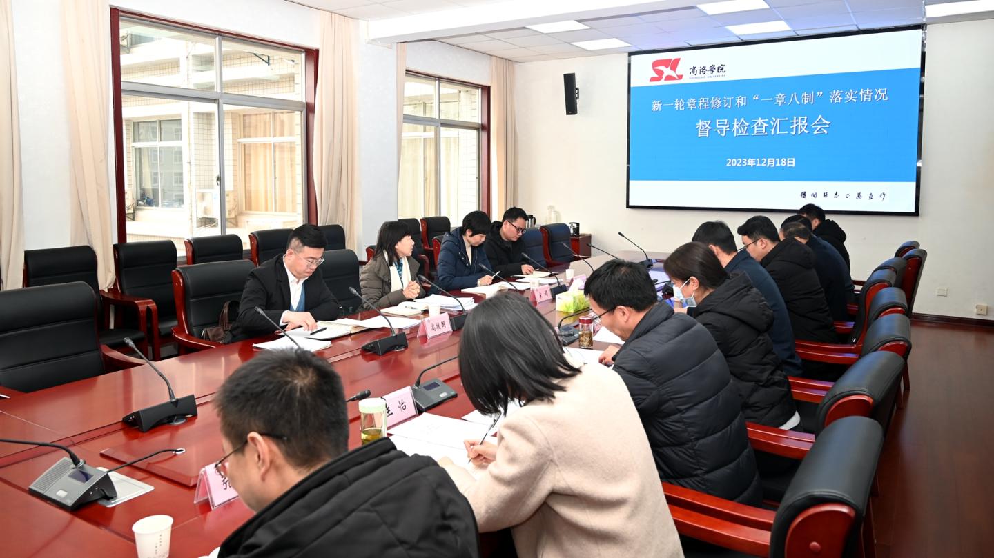 12月18日,省政府教育督導(dǎo)委員會(huì)督導(dǎo)檢查組一行4人來(lái)到我校,對(duì)新一輪章程修訂工作和“一章八制”落實(shí)情況開(kāi)展實(shí)地督導(dǎo)檢查。校黨委副書(shū)記劉勇出席匯報(bào)座談會(huì)。黨委辦公室·院長(zhǎng)辦公室、紀(jì)委、宣傳部、工會(huì)、人事處、學(xué)生處、教務(wù)處、財(cái)務(wù)處相關(guān)負(fù)責(zé)人參加會(huì)議。