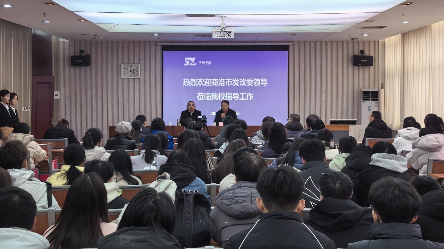12月22日,我校邀請商洛市發(fā)展和改革委員會(商洛市糧食和物資儲備局)黨組書記、主任王宇鵬為生物學院糧食專業(yè)師生作專題報告。副校長王新軍主持報告會。商洛市發(fā)改委(商洛市糧食和物資儲備局)副主任戴佳錕,市糧油質量檢驗所所長胡海峰,生物學院領導班子成員和2023級糧食工程專業(yè)、食品工程專業(yè)師生100余人參加報告會。