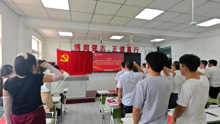畢業(yè)生黨員面向黨旗,莊嚴(yán)地舉起右手,在字字鏗鏘中重溫入黨誓詞,追憶入黨初心,激勵(lì)全體畢業(yè)生黨員賡續(xù)紅色血脈,強(qiáng)化黨員意識(shí),進(jìn)一步激發(fā)黨員使命感和責(zé)任感,終身踐行黨旗下的錚錚誓言,做新時(shí)代合格的“答卷人”。