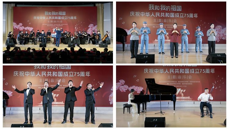 為慶祝新中國75周年華誕,增強商洛市民的愛國熱情和民族自豪感,9月29日晚,由商洛市文學(xué)藝術(shù)界聯(lián)合會、商洛學(xué)院藝術(shù)學(xué)院、商洛市音樂家協(xié)會聯(lián)合主辦“我和我的祖國——慶祝中華人民共和國成立75周年主題音樂會”在商洛學(xué)院隆重舉辦。商洛市文聯(lián)黨組書記、主席劉明權(quán),市文聯(lián)黨組成員、專職副主席李志華,商洛學(xué)院黨委委員、組織部部長張向東,黨委委員、宣傳部部長王霄飛,商洛市音協(xié)主席李世鵬,藝術(shù)學(xué)院黨政領(lǐng)導(dǎo)班子與300余名師生及社會各界人士共同觀看演出。