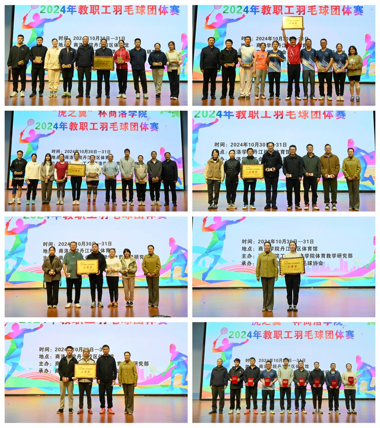 10月30日至31日,由商洛學院工會和體育教學研究部聯(lián)合主辦的“虎之翼”杯教職工羽毛球團體賽,在丹江校區(qū)體育館圓滿落幕。副校長劉寶盈出席閉幕式并為獲獎團隊頒獎。工會、體育教學研究部相關負責人與工會各分會近200名教職工共同參與活動。閉幕式由工會副主席魚小強主持。