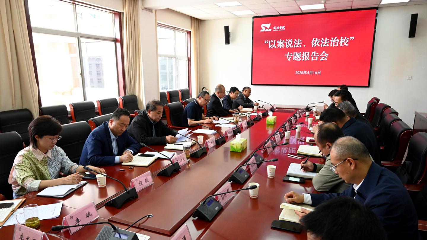 4月16日,學(xué)校召開“以案說(shuō)法、依法治?!狈ㄖ螌n}報(bào)告會(huì)。學(xué)校特聘法律顧問(wèn)、天乾律師事務(wù)所陳波律師為各部門負(fù)責(zé)人作依法治校專題報(bào)告。報(bào)告會(huì)由校黨委副書記劉寶盈主持。副校長(zhǎng)王新軍、郭瑾、張向東出席報(bào)告會(huì)。