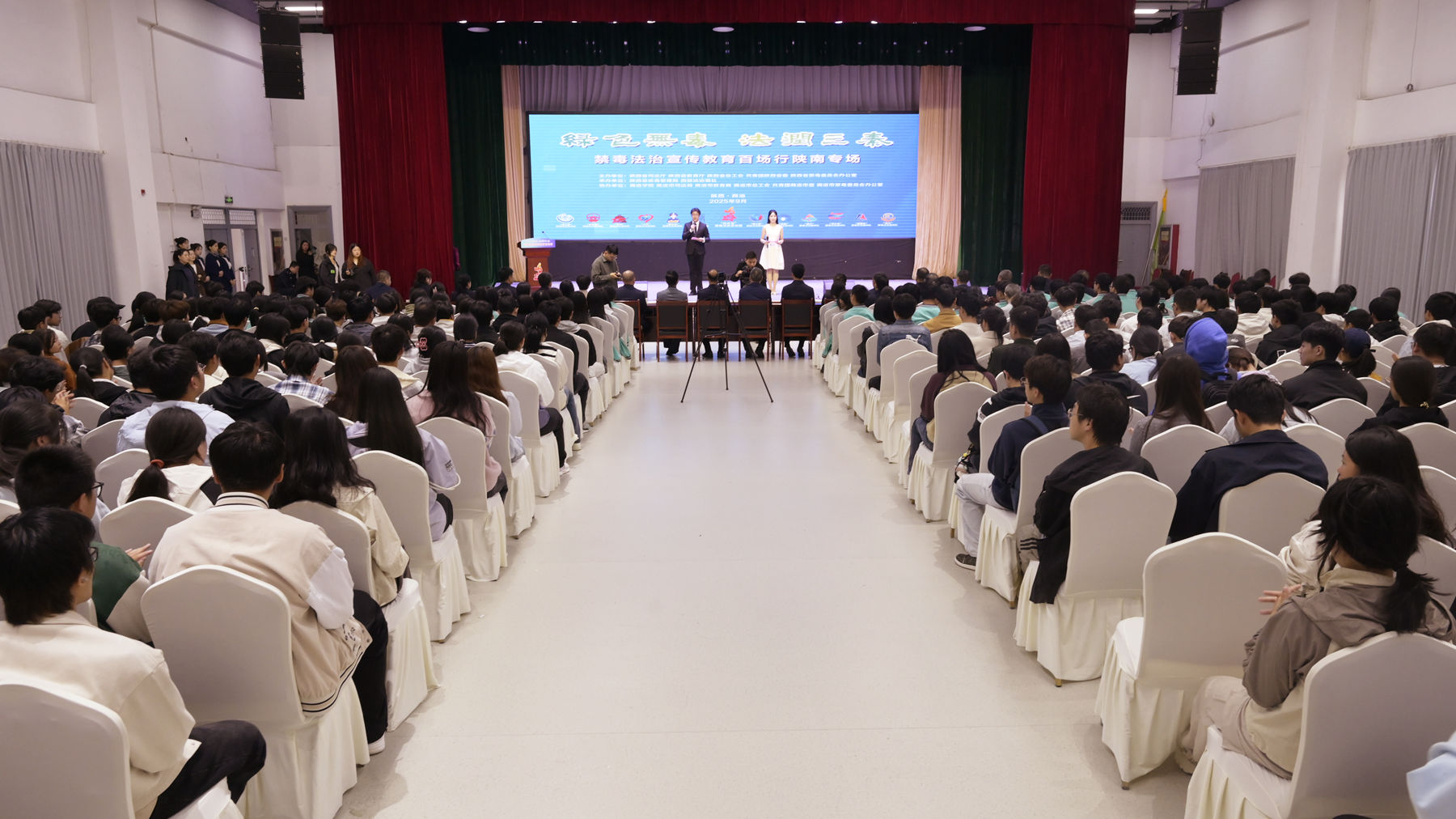 活動中,省女強制隔離戒毒所干警自編自導(dǎo)的快板表演,用通俗易懂的方式普及禁毒知識,贏得陣陣掌聲。百合花禁毒法治宣傳團(tuán)干警為現(xiàn)場師生作了禁毒法治講座,結(jié)合真實案例,深入剖析新型毒品的偽裝性與危害性,詳細(xì)解讀禁毒法律法規(guī),引導(dǎo)師生增強法治意識,自覺抵制毒品誘惑。