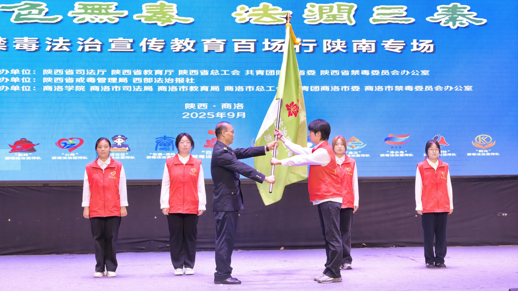 省戒毒管理局教育矯治處處長曹生明為我校志愿者團(tuán)隊授“百合花禁毒法治宣傳團(tuán)商洛學(xué)院志愿者”旗幟并贈送禁毒宣傳資料。百合花禁毒法治宣傳團(tuán)干警代表陳俞戈及我校禁毒宣傳學(xué)生志愿者代表分別作表態(tài)發(fā)言。