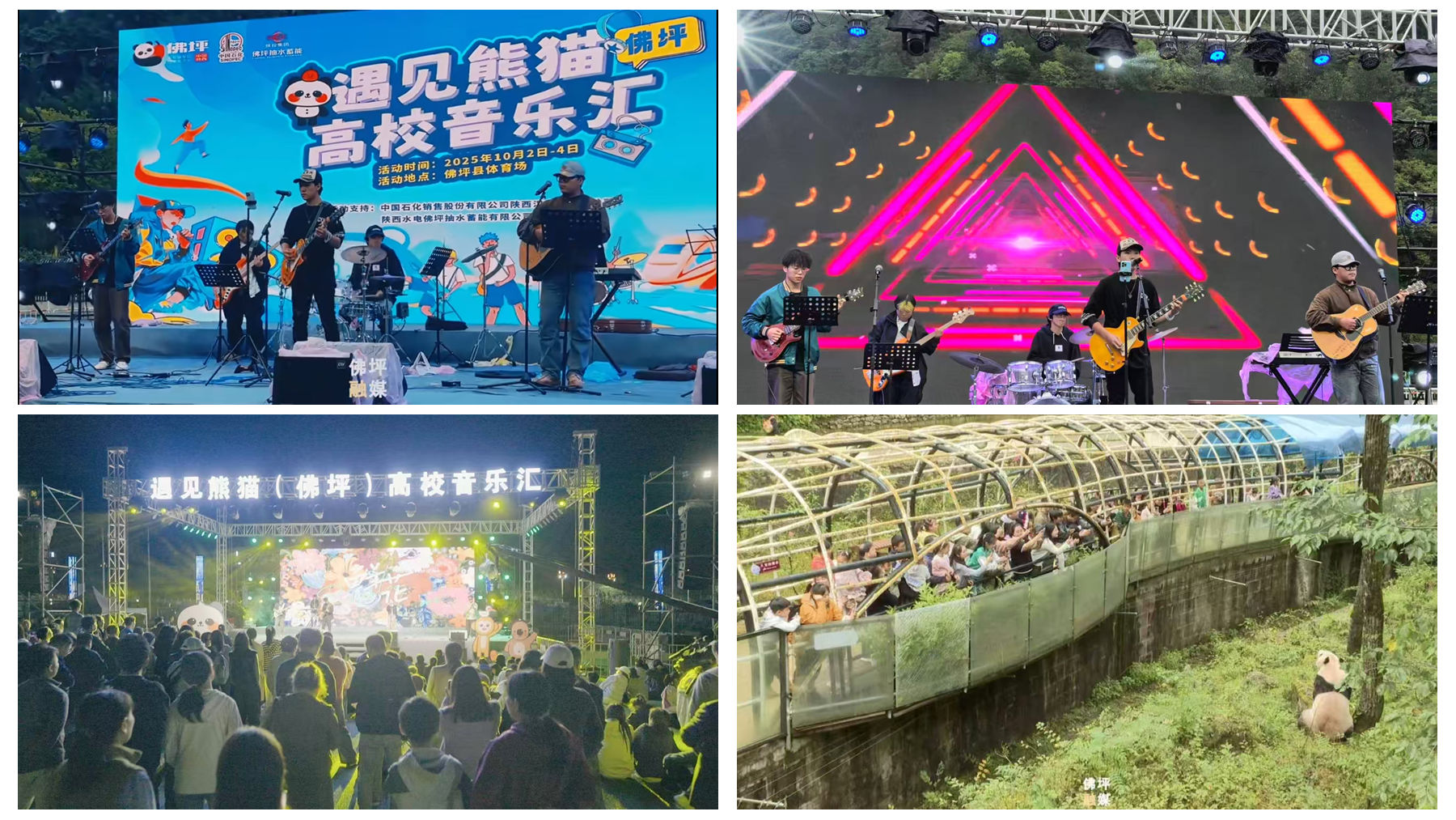 在高校音樂(lè)匯環(huán)節(jié),我校大藝團(tuán)“夢(mèng)影樂(lè)隊(duì)”傾情演繹了《流行》《私奔》《活著》《茶底世界》等多首歌曲。同學(xué)們憑借扎實(shí)的專(zhuān)業(yè)技能和飽滿(mǎn)的舞臺(tái)表現(xiàn)力,充分展現(xiàn)了高校學(xué)子積極向上的精神風(fēng)貌,也將現(xiàn)代音樂(lè)文化與佛坪獨(dú)特的熊貓IP、自然人文景觀(guān)有機(jī)融合,為現(xiàn)場(chǎng)觀(guān)眾帶來(lái)一場(chǎng)視聽(tīng)盛宴,成為“文旅+音樂(lè)”跨界融合的生動(dòng)實(shí)踐。