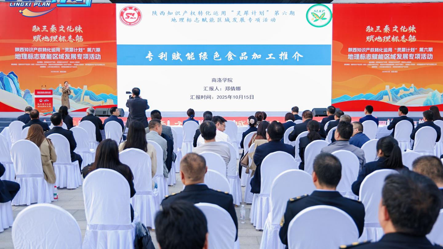 10月15日,由陜西省知識(shí)產(chǎn)權(quán)局、陜西省農(nóng)業(yè)農(nóng)村廳、商洛市人民政府聯(lián)合主辦的陜西知識(shí)產(chǎn)權(quán)轉(zhuǎn)化運(yùn)用“靈犀計(jì)劃”第六期地理標(biāo)志賦能區(qū)域發(fā)展專題活動(dòng)在商洛市洛南縣舉行,省知識(shí)產(chǎn)權(quán)局、商洛市相關(guān)負(fù)責(zé)人及行業(yè)代表150余人參加活動(dòng)。我校食品營(yíng)養(yǎng)與生物質(zhì)資源高值化利用團(tuán)隊(duì)受邀參加路演推介,集中展示學(xué)校在知識(shí)產(chǎn)權(quán)轉(zhuǎn)化賦能地方產(chǎn)業(yè)發(fā)展方面的顯著成效。