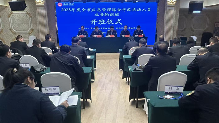 11 月 24 日上午,由商洛市應(yīng)急局主辦、商洛學(xué)院繼續(xù)教育學(xué)院承辦的商洛市2025 年度應(yīng)急管理綜合行政執(zhí)法人員業(yè)務(wù)輪訓(xùn)班在商洛學(xué)院繼續(xù)教育培訓(xùn)基地會(huì)議廳順利開(kāi)班。校黨委副書(shū)記王新軍,商洛市應(yīng)急局黨委委員、副局長(zhǎng)楊國(guó)鋒出席開(kāi)班式。全市60余名應(yīng)急執(zhí)法人員參加儀式。