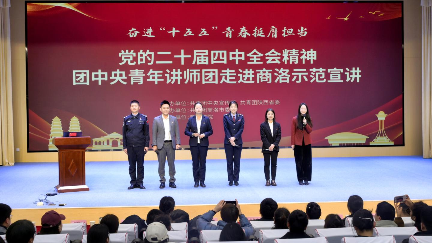 為深入學習貫徹黨的二十屆四中全會精神,引導廣大青年深刻把握“十五五”時期發(fā)展藍圖,積極投身中國式現(xiàn)代化建設(shè)的偉大實踐,11月22日,團中央青年講師團走進商洛學院,舉辦“奮進‘十五五’ 青春挺膺擔當”示范宣講活動。商洛市基層團干部、各領(lǐng)域青年代表及商洛學院師生代表400余人參加活動?;顒泳劢埂笆逦濉睍r期的發(fā)展目標、戰(zhàn)略任務與實踐路徑,圍繞經(jīng)濟社會發(fā)展、科技創(chuàng)新、文化建設(shè)、民生改善、國防建設(shè)、綠色發(fā)展等領(lǐng)域熱點,將國家戰(zhàn)略發(fā)展與青年個人成長相結(jié)合,運用鮮活案例、詳實數(shù)據(jù)和青年化語言,深入淺出地解讀全會精神,引導青年準確把握國家發(fā)展大勢,增強歷史使命感和時代責任感。