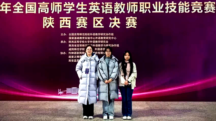 11月28日至29日,全國高師學(xué)生英語教師職業(yè)技能競賽(陜西賽區(qū))決賽在咸陽師范學(xué)院圓滿落幕。我校3名英語專業(yè)學(xué)子與來自全省19所高校的214名選手同臺競技,經(jīng)過激烈角逐,最終英語2401班陳可欣榮獲一等獎,英語2402班李嘉欣、英語2401班楊笑妍榮獲二等獎。