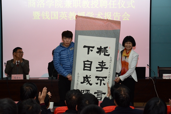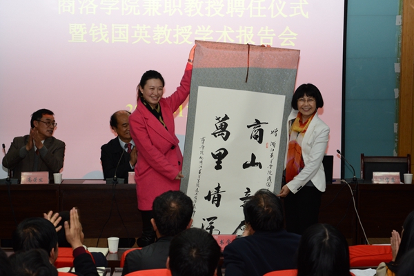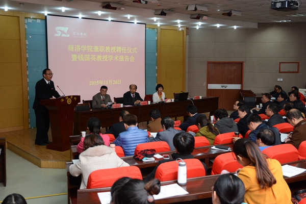 劉建林在聘任儀式上回顧了錢國英教授與我校的深厚情誼和對我校的熱情幫助,介紹了錢國英教授在高等教育教學(xué)研究方面的杰出成就。他說,商洛學(xué)院發(fā)展到今天,已經(jīng)完全融入到了本科教育的行列,正在以“穩(wěn)基、提質(zhì)、增速”,創(chuàng)新驅(qū)動發(fā)展的新常態(tài),確保學(xué)校在中國高等教育深化改革的洪流中不落伍、出成績。在這個過程中,賈平凹先生,侯洵、劉加平院士,教育部本科教學(xué)研究中心吳博主任、錢國英校長和西北大學(xué)高勝利教授等各界人士給予了我們巨大幫助與支持。我校師生員工要懂得感恩,牢記以錢國英教授為代表的專家學(xué)者對我們的幫助,把這些幫助轉(zhuǎn)化為工作動力,在各自崗位上為學(xué)校的創(chuàng)新發(fā)展做出自己應(yīng)有的貢獻。