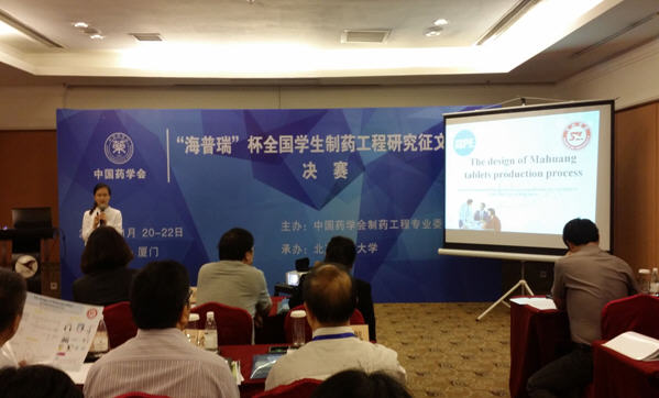 本次比賽由中國藥學(xué)會(huì)制藥工程專業(yè)委員會(huì)主辦、北京化工大學(xué)承辦,旨在從制藥工程領(lǐng)域的最新研究進(jìn)展、制藥工程本科人才的培養(yǎng)教育入手,為國內(nèi)外制藥工程領(lǐng)域企業(yè)界、科技教育界搭建研討平臺(tái)和溝通機(jī)會(huì),促進(jìn)我國制藥工程的現(xiàn)代化和制藥工程領(lǐng)域科技和教育水平的提高。比賽分為初賽和決賽,經(jīng)過教育部專家初賽評(píng)選,我校學(xué)生張茹與北京化工大學(xué)、四川大學(xué)、武漢工程大學(xué)、上海工程技術(shù)大學(xué)、浙江工業(yè)大學(xué)等院校共6名選手進(jìn)入決賽,會(huì)上張茹用全英文進(jìn)行了論文答辯。